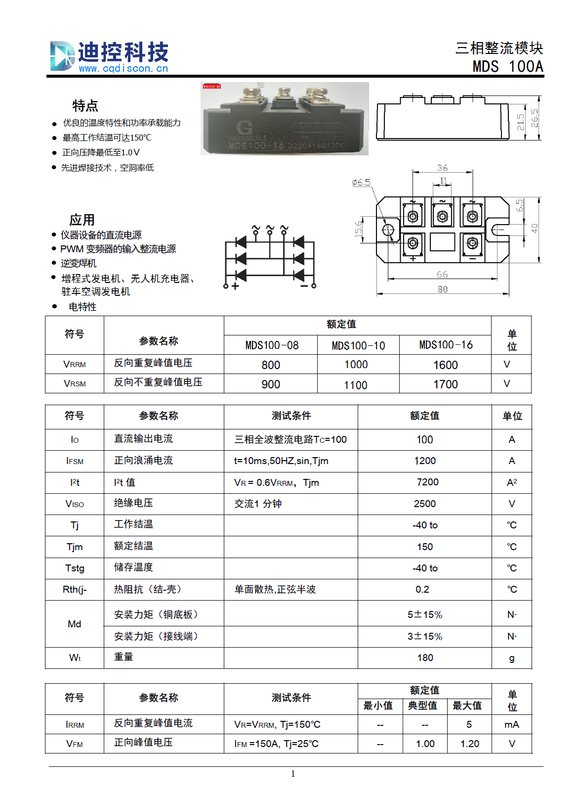 三相整流桥MDS100A